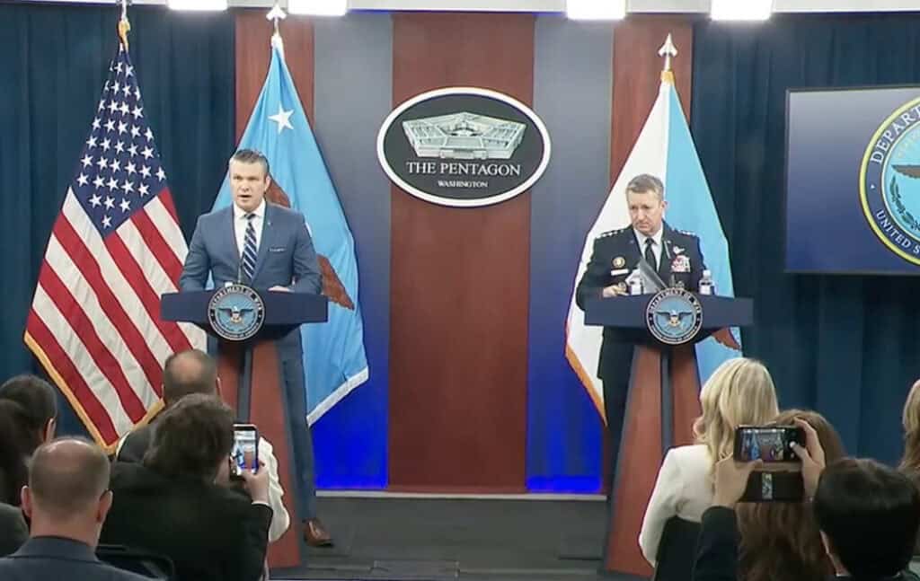 During today’s press conference by Hegseth and Chairman of the Joint Chiefs of Staff General Dan Caine, Hegseth touted the destruction of Iran’s conventional military capabilities and the killing of key Iranian leaders, including Khamenei and numerous military commanders.