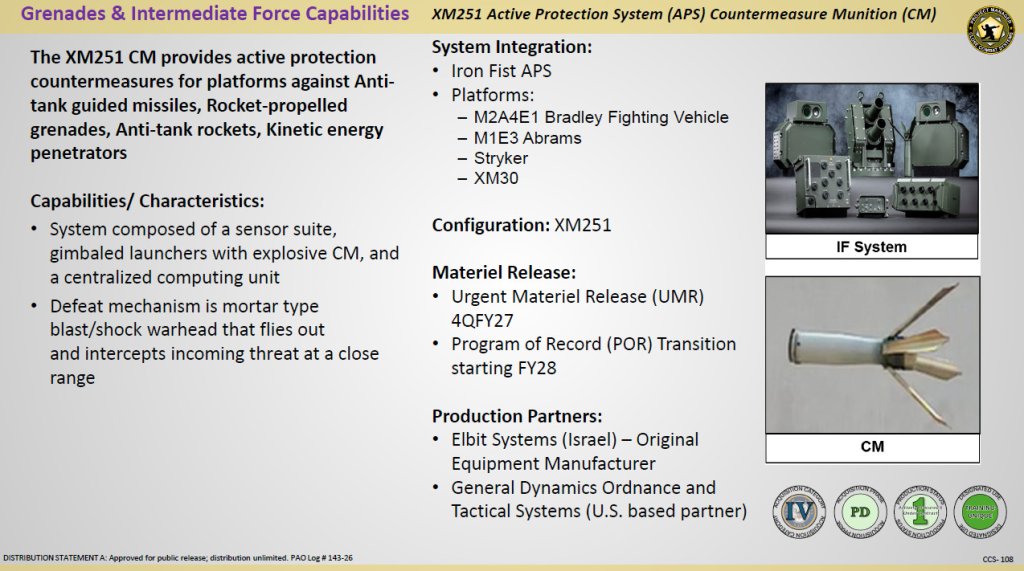 An official US Army overview of what it has now designated the XM251 Active Protection System, a version of the Israeli-designed Iron Fist. US Army