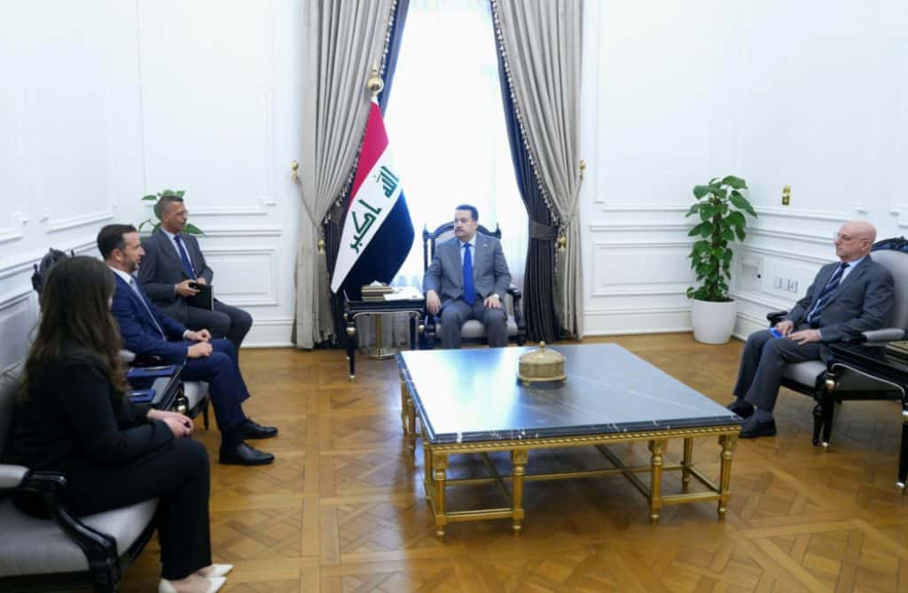 Iraqi Prime Minister Mohammed Shia al Sudani (center) meets with Italian Ambassador to Iraq Niccolò Fontana (second from left, seated) on March 18. (Iraq Prime Minister’s Office)