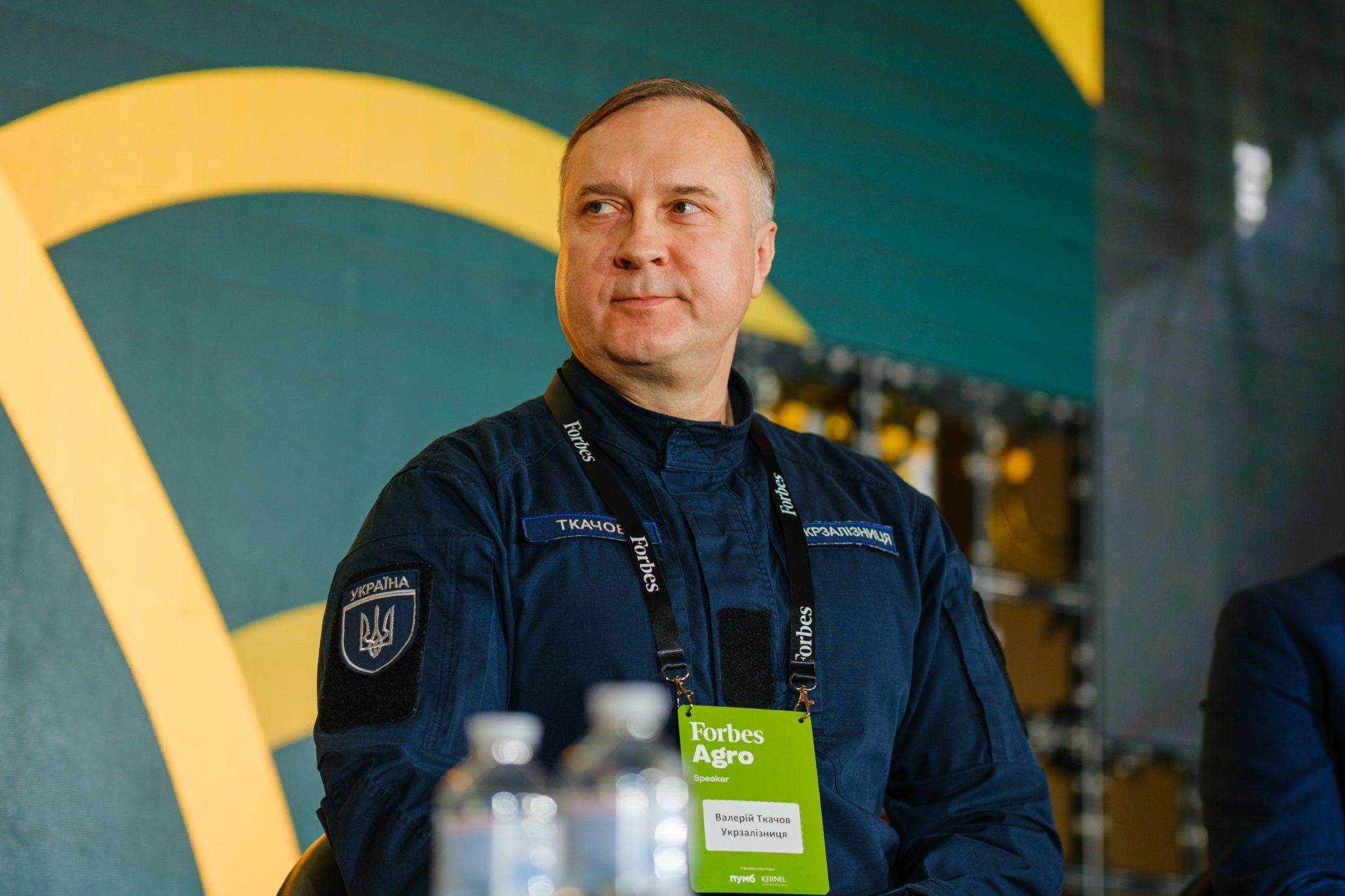 Valeriy Tkachov, deputy director of the commercial department at Ukrainian Railways, speaking during the Forbes Agro conference. (Photo courtesy of Forbes Ukraine)