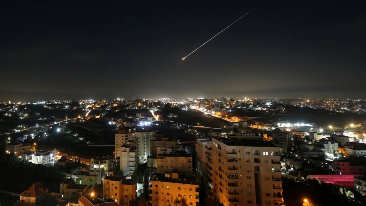 Missiles launched from Iran in retaliation for Israeli attacks are seen in the night sky over the city of Hebron in the West Bank. Photo” Wisam Hashlamoun/Anadolu via Getty Images