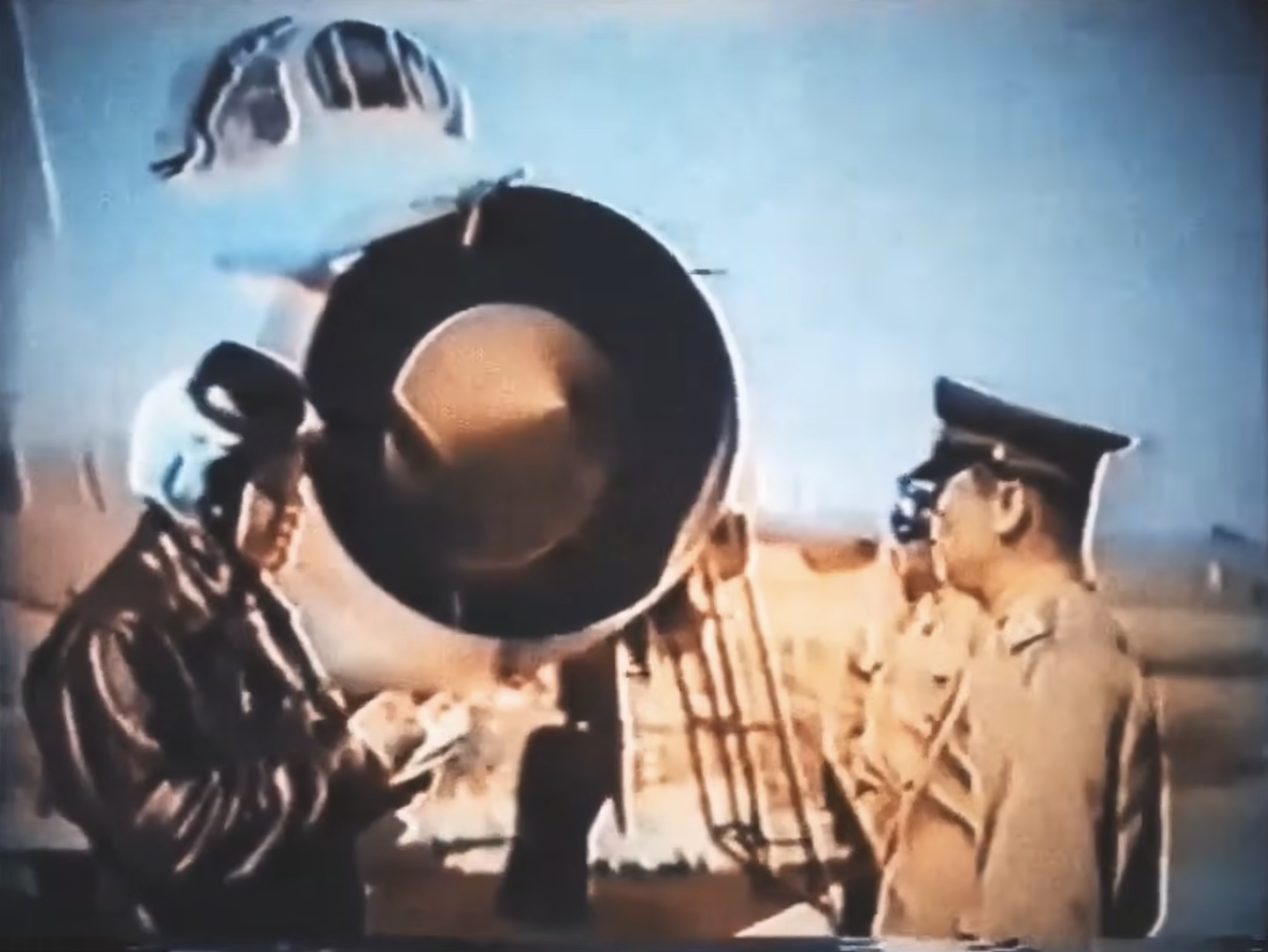 With that in mind, the video could at least show portions of an IAB-500 test, although the location and the original voiceover point squarely to the 1962 Semipalatinsk test. The apparent installation of a camera pod below the Su-7’s wing, to record the detonation, also suggests a nuclear test rather than training.