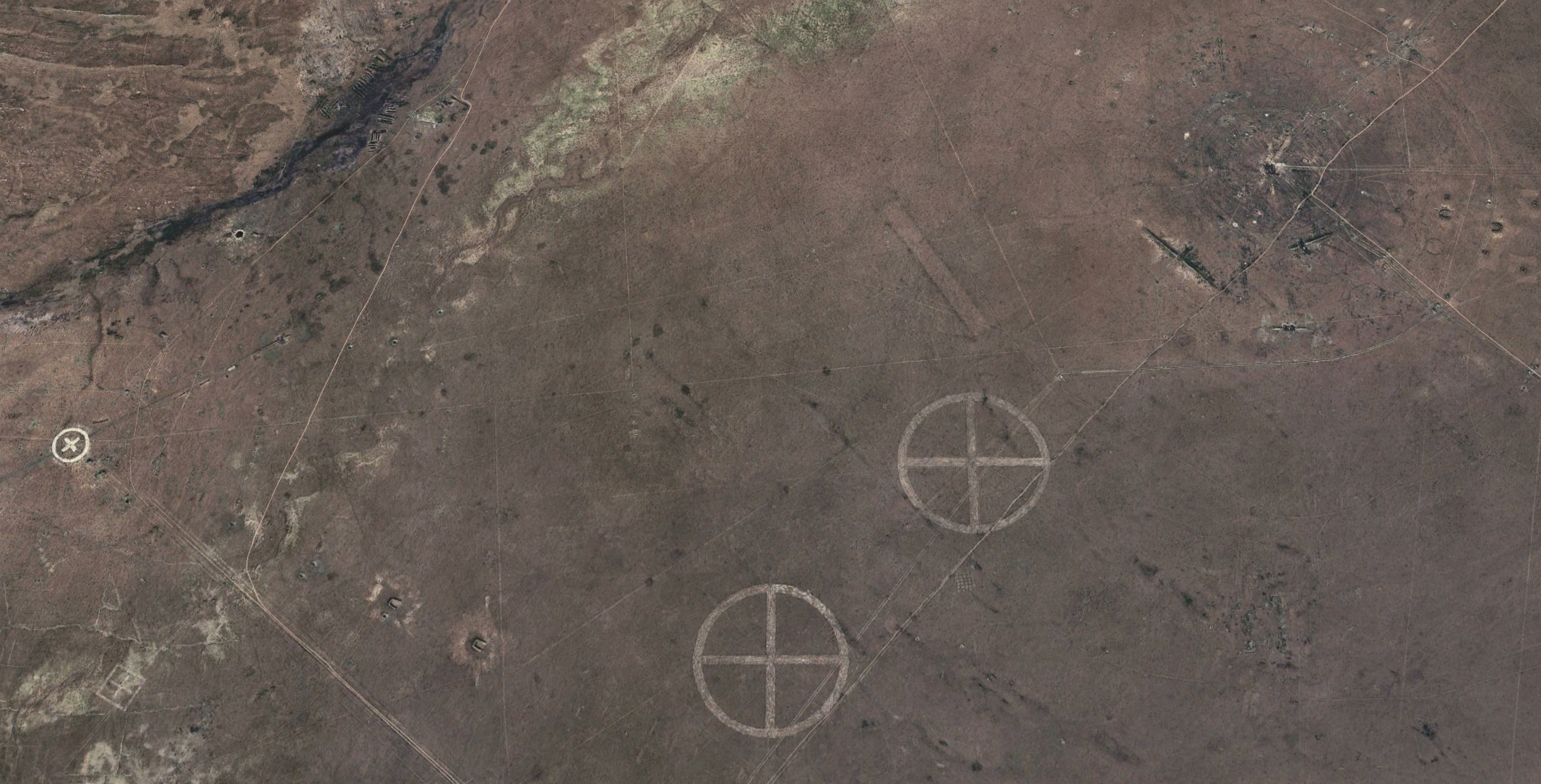 Craters and target markings are still visible in satellite imagery of the Semipalatinsk range. Google Earth