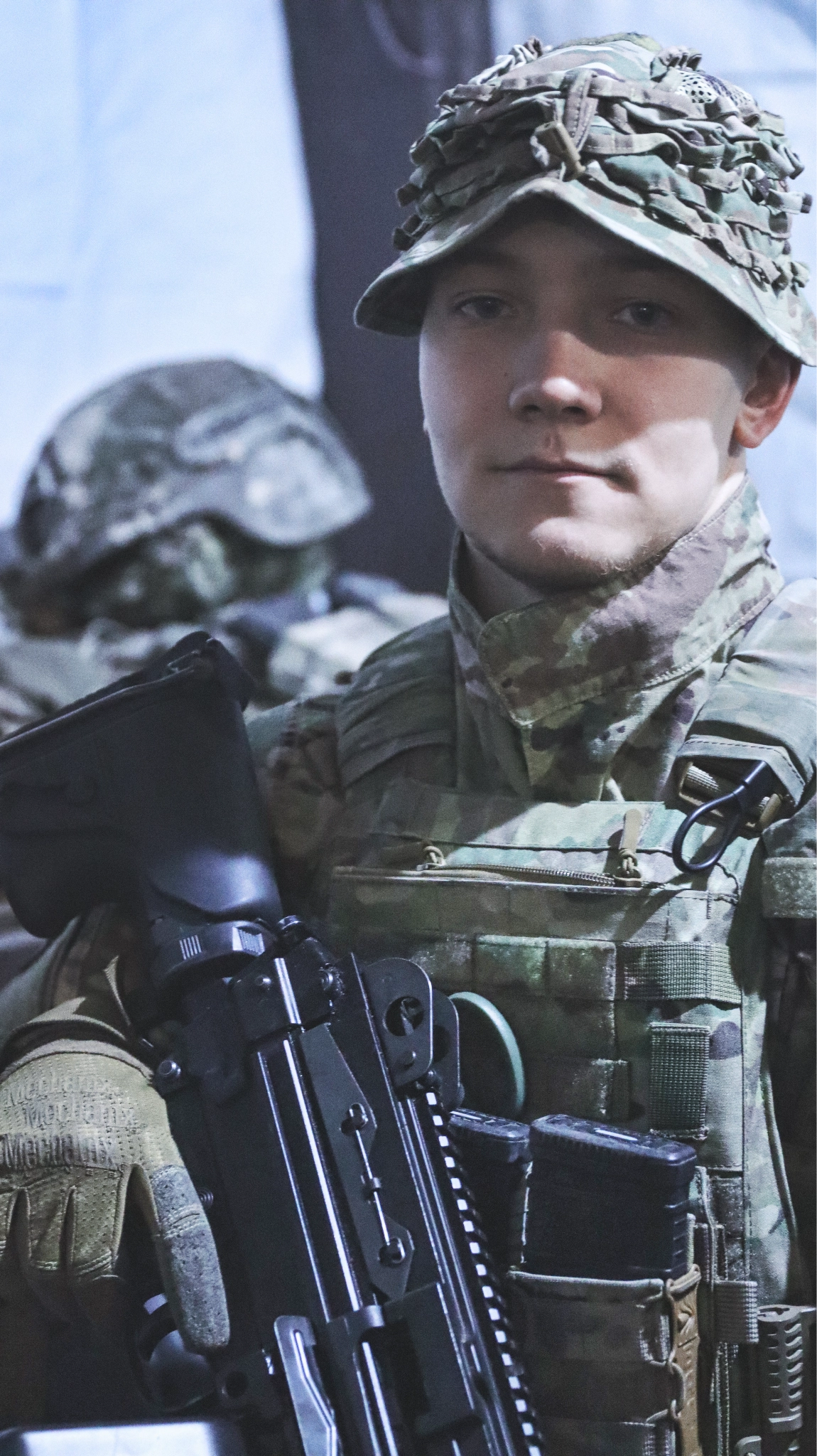 Baby boy. Behind him, a rifle leans against the bedpost. The men in the room point out that he is a very good shot. Baby boy killer. His call sign is Serpen – August. When the full-scale invasion began in 2022, he was 20, studying at a military academy in Kharkiv. He had wanted to be a soldier since childhood, he says. At one point he considered studying robotics in Poland, then chose to return and pursue a military career instead. The war began while he was already on that path.